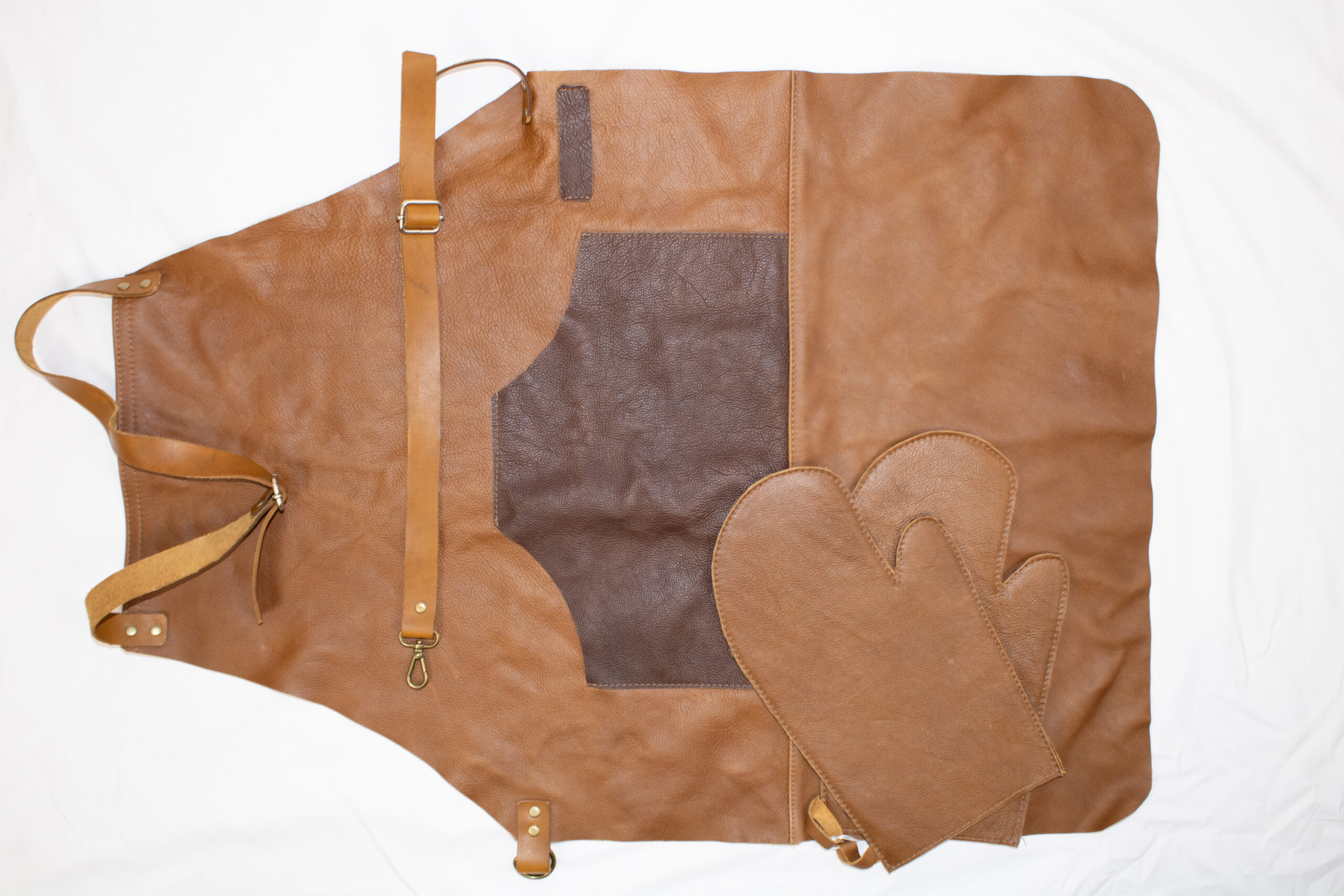 full leather apron with gloves combo on special