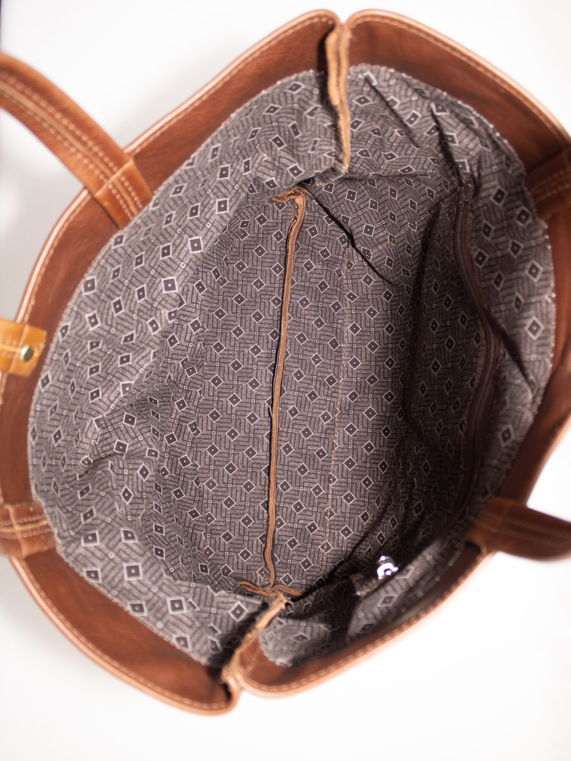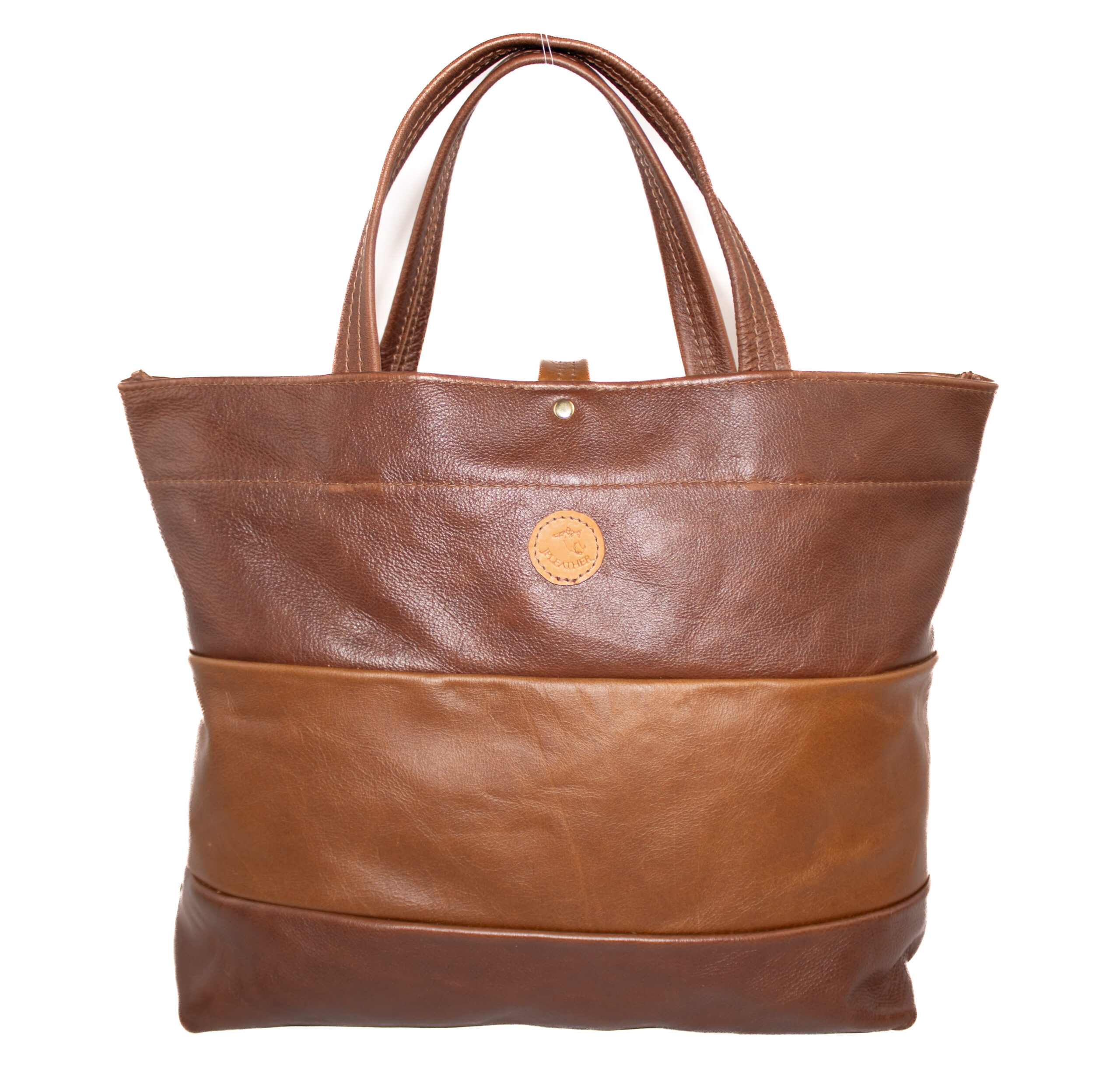 Crafted from premium, full-grain leather — this tote blends light and dark brown tones for a timeless look. It features a secure inner zip pocket and plenty of room for your everyday essentials.